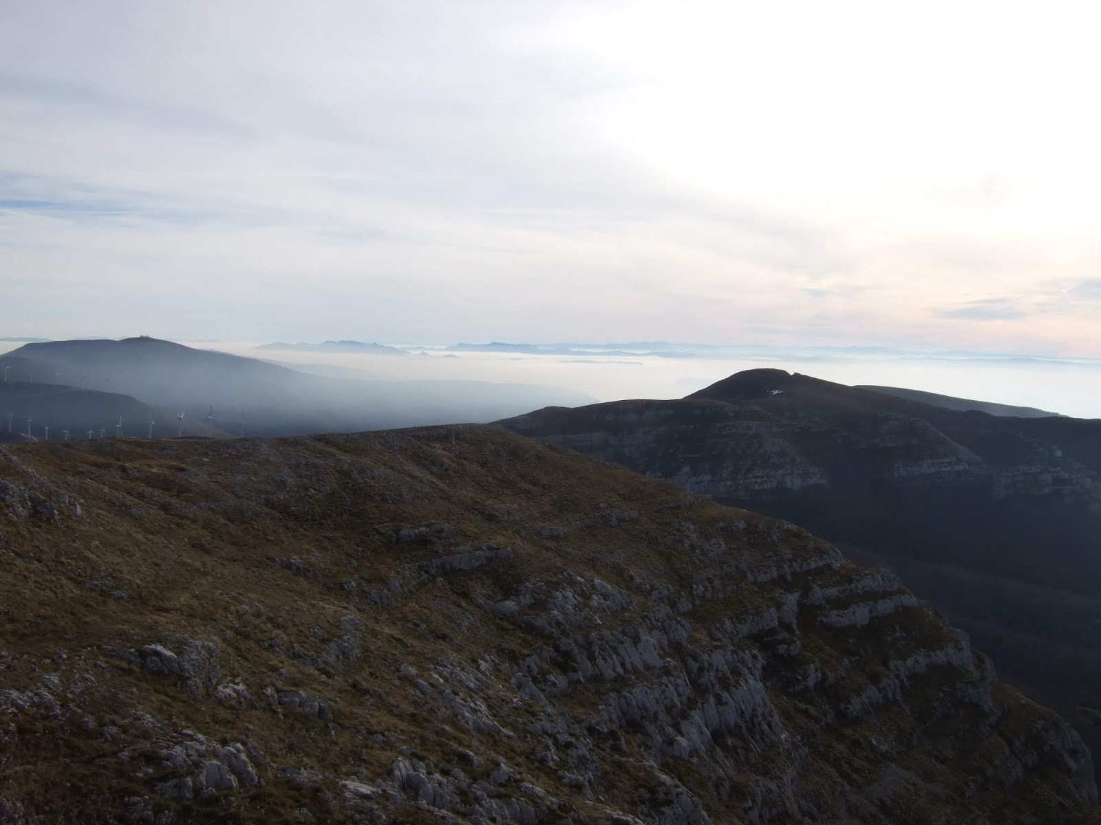 The fog in the valleys to the south had risen, leaving just a few peaks visible above it